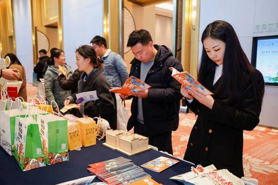 会场外研学旅游资源展示区气氛热烈,五市研学旅游主题文创产品与宣传折页引得与会嘉宾纷纷驻足咨询,在交流中探寻合作可能。