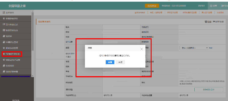 二、进入页面后,点击评价弹窗。如无,则点击左侧“好差评”评价表栏目,点击评价。